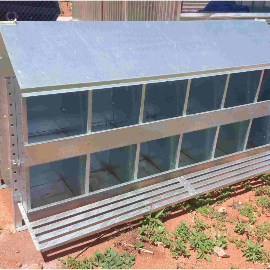 Roll away nest box allow eggs to roll out of the nest to prevent dirt and cracking. It is made out of galvanized sheet for long life span